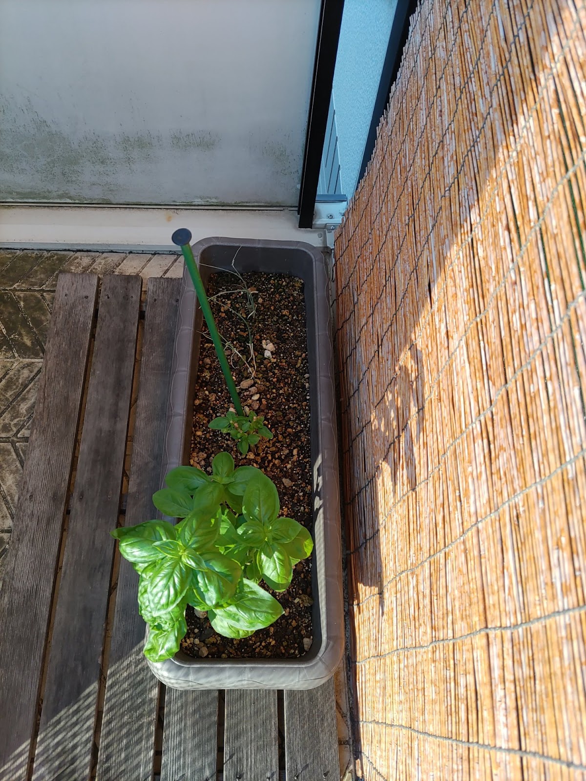 バジルは、日当たりの良い方は良く伸びてます。正直、収穫してもいいくらいですが…。